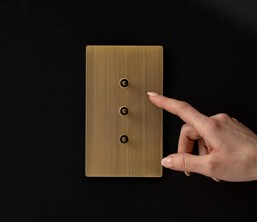 - ソリッドブラスのシグネチャーメタル仕上げを施したアヴィエナキーパッドは、アリッセやパラディウムなどのルートロンキーパッドともインテリアに調和します。